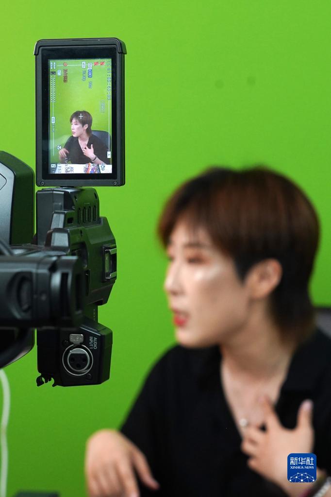 6月18日,在北京市东城区红桥市场的红桥电商直播基地内,工作人员在直播间内推介珍珠饰品。