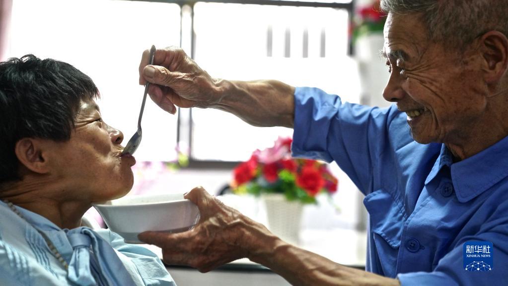 6月18日,廖斌晟在家中喂女儿吃饭。新华社记者 胡晨欢摄