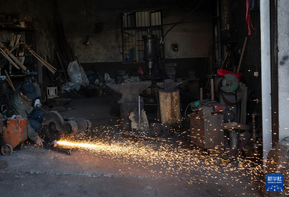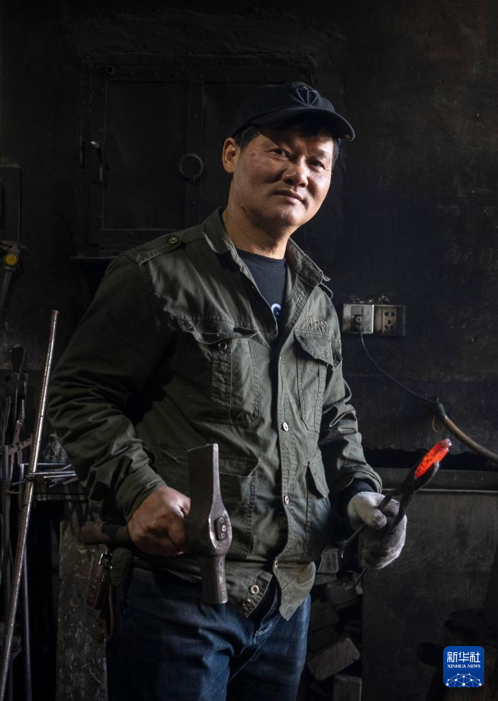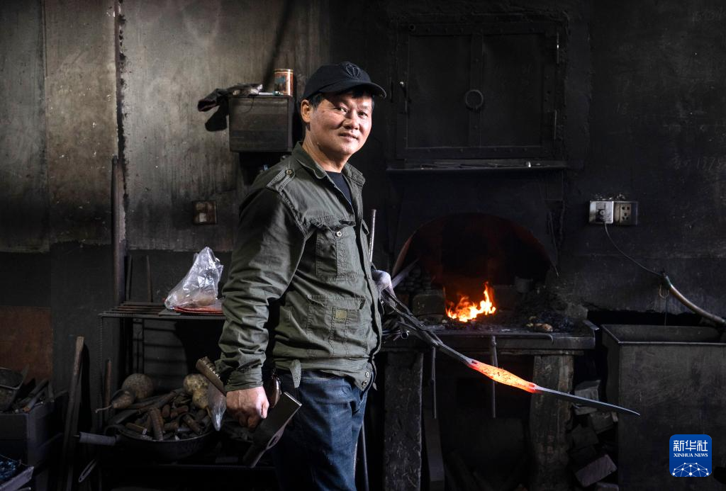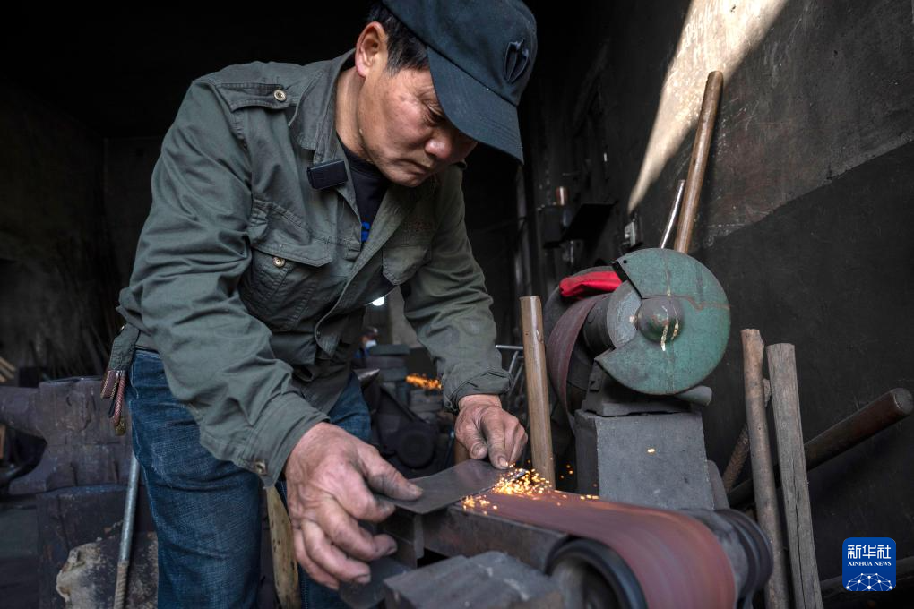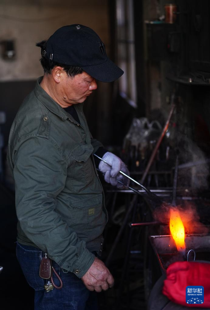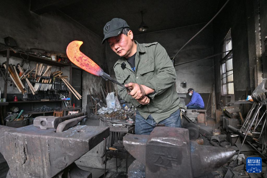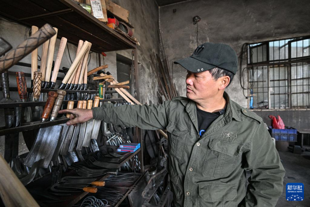 在浙江省杭州市临安区太阳镇太阳村,叮叮当当的敲打声从一间堆满工具、墙体熏黑的小房间里传出——这里有一位远近闻名的蓝铁匠,凭借娴熟的手工传统技艺,为附近村镇的乡亲们提供农具定制和修理服务。