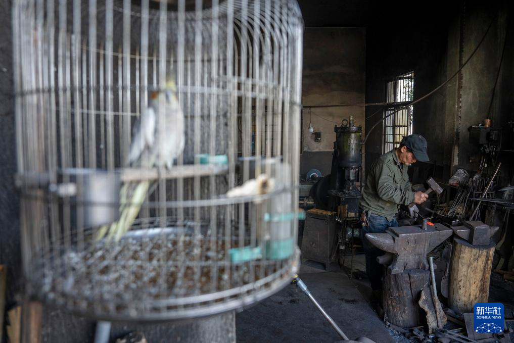 蓝炳忠在铁匠铺里工作(12月7日摄)。