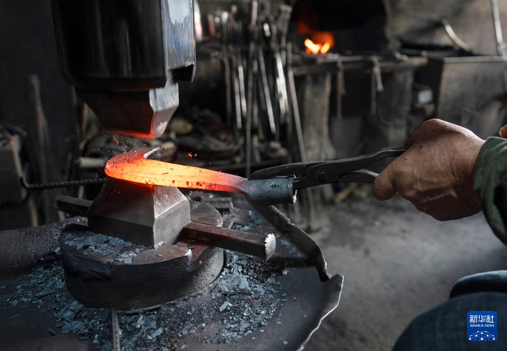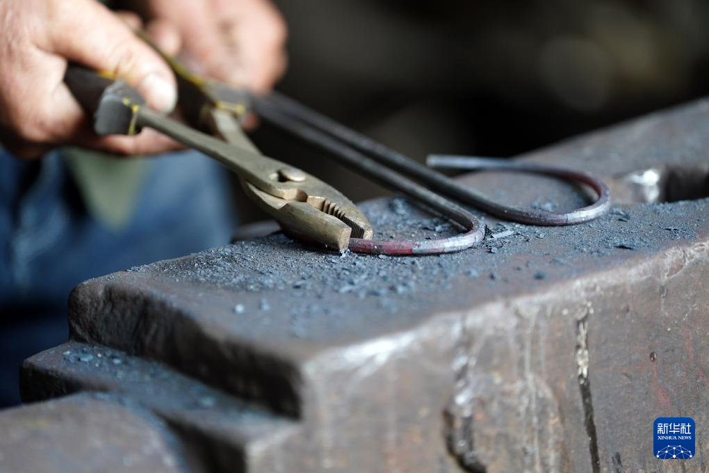 蓝炳忠在铁匠铺里制作一把火钳(12月7日摄)。