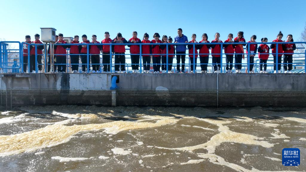 3月20日,河北省唐山市丰南区一污水处理厂的工作人员为学生讲解污水处理知识。