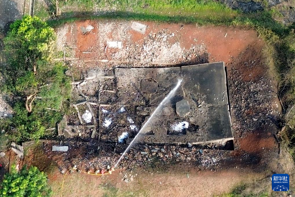 3月31日,在印度尼西亚爪哇岛茂物,消防员在爆炸现场工作(无人机照片)。