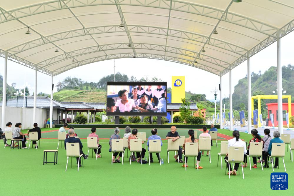 6月15日,福建省武夷山市转移群众在避灾安置点海亮研学基地内观看电影。