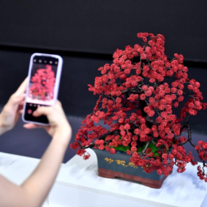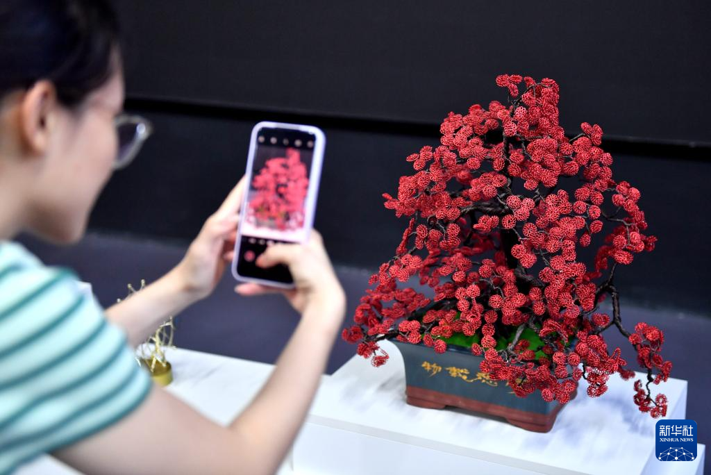 8月30日,在安平县国际丝网展览馆,观众在拍摄丝网制作的工艺品。