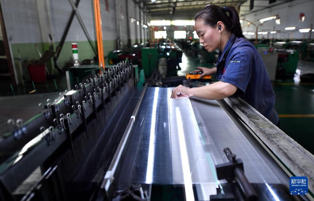 8月30日,安平县一家丝网企业的工人在检测产品质量。
