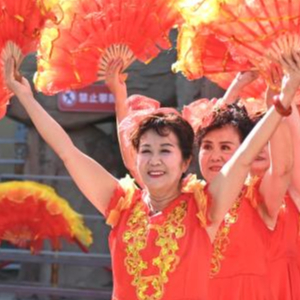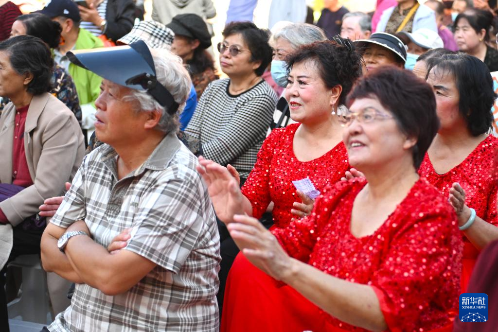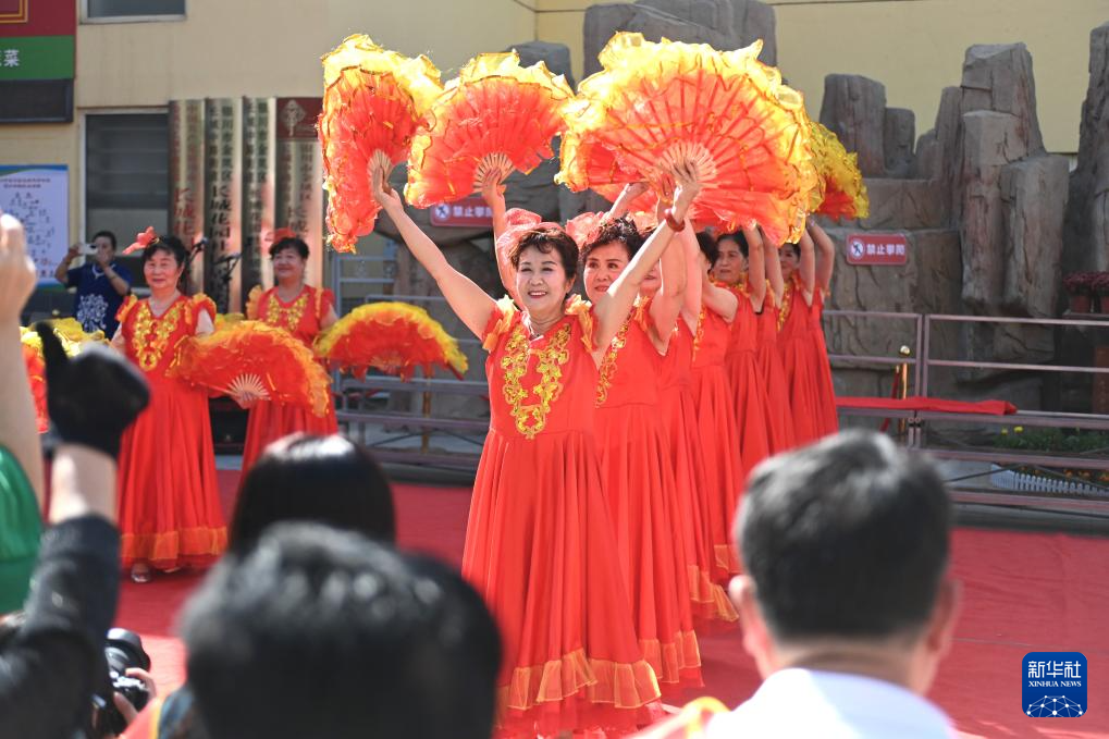 9月25日,居民在长城花园社区广场表演舞蹈。
