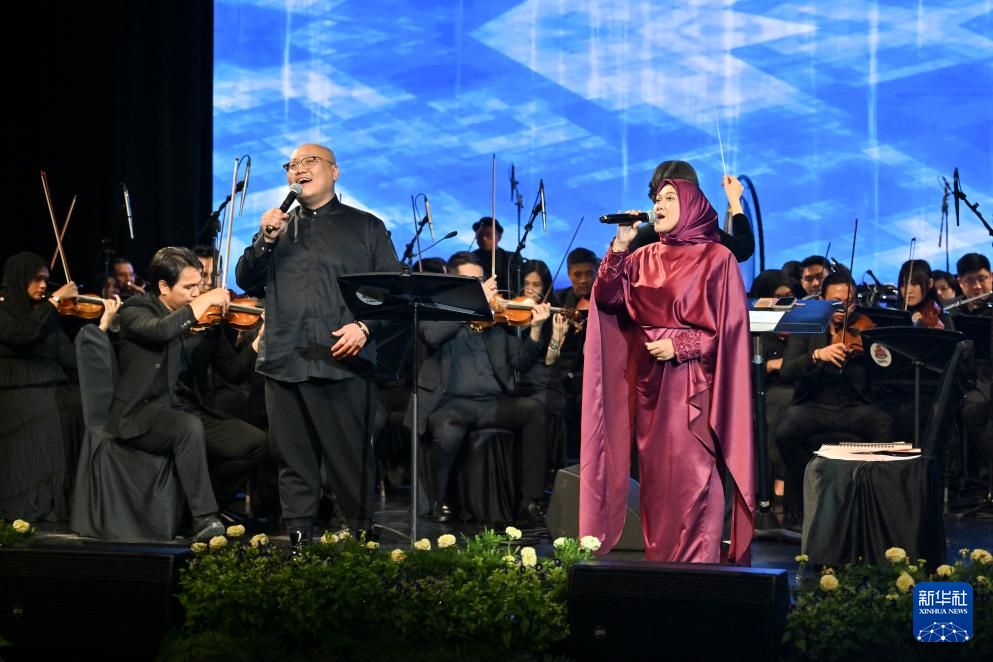 9月26日,马来西亚吉隆坡,来自中国和马来西亚的歌手在“歌颂友谊·唱响未来”马中建交50周年声乐音乐会上演出。