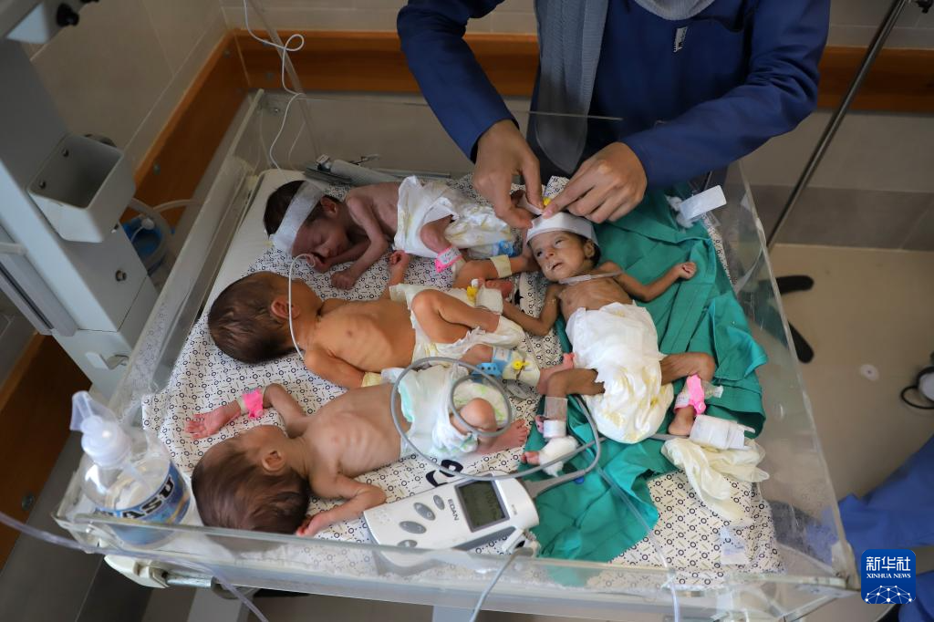 2023年11月19日,在加沙地带南部城市拉法的一家医院,医护人员照顾从希法医院撤离的早产儿。