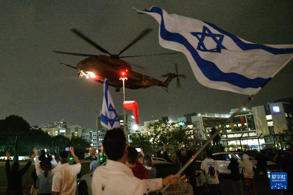 2023年11月26日,搭载获释人员的直升机抵达以色列佩塔提克瓦的一所医院。巴勒斯坦伊斯兰抵抗运动(哈马斯)下属武装派别卡桑旅当天释放了第三批被扣押人员。
