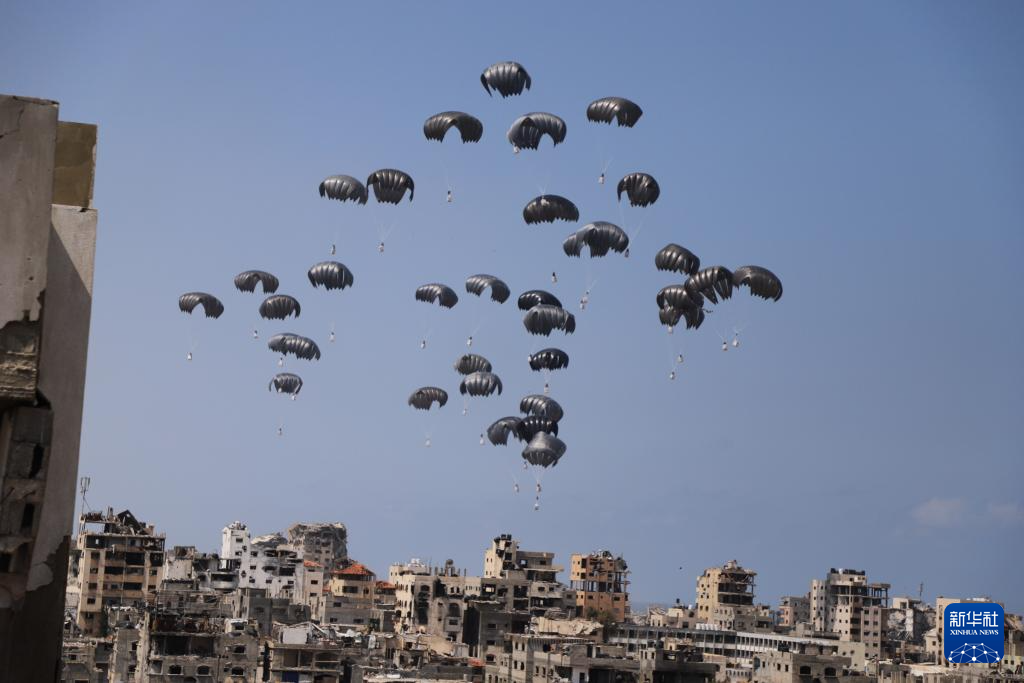 2024年4月30日,飞机空投人道主义援助物资进入加沙地带。本轮巴以冲突持续至今,加沙地带食品严重缺乏,面临饥荒。