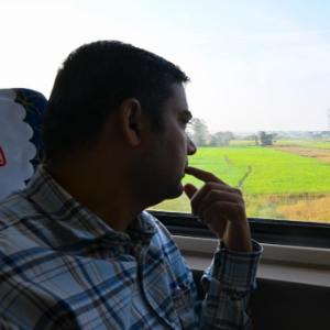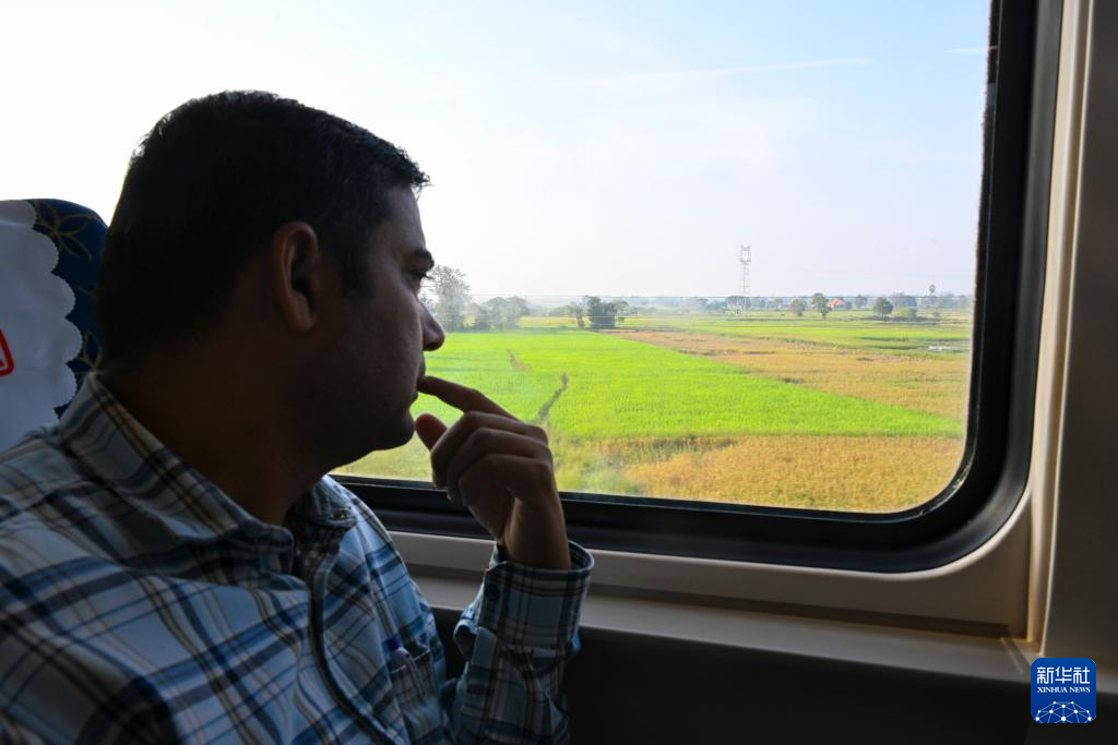 这是10月12日在老挝拍摄的中老铁路C98列车上的一名乘客。