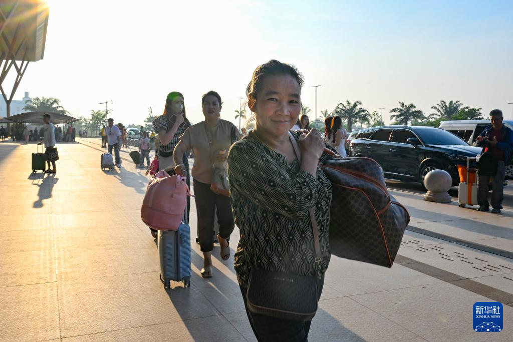 4月15日,在中老铁路老挝琅勃拉邦站,车站工作人员与旅客合影。
