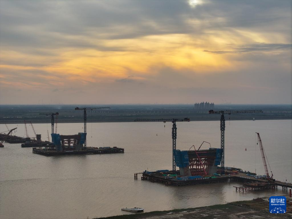11月9日拍摄的崇启公铁长江大桥建设现场。