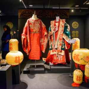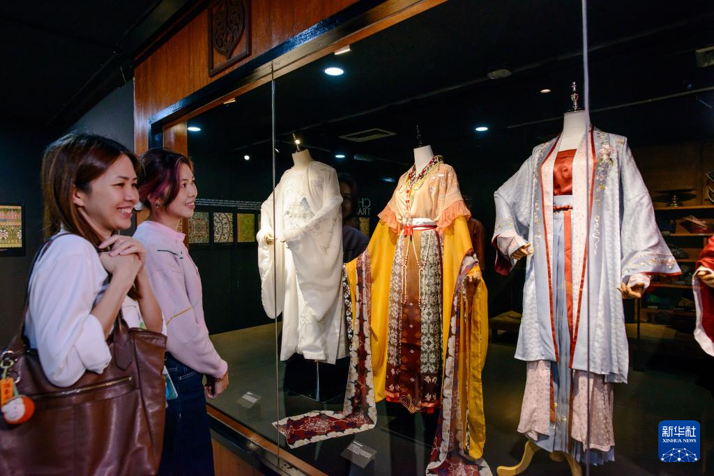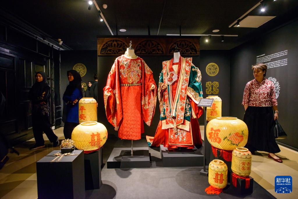 12月10日,在马来西亚吉隆坡,观众在展览现场观赏展出的汉服。