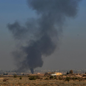 12月9日,在叙利亚大马士革迈宰,一处军事基地因以军空袭而冒出浓烟。