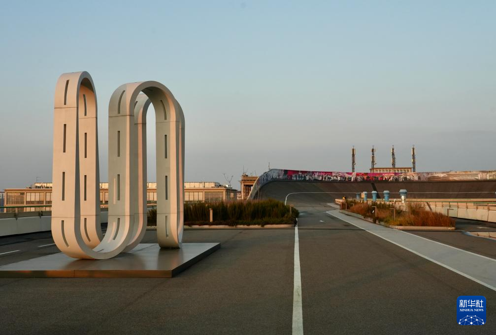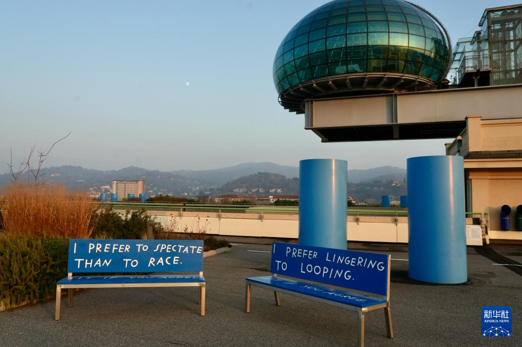 这是12月12日在意大利都灵市拍摄的林戈托大楼楼顶空中花园“跑道500”的艺术展品。