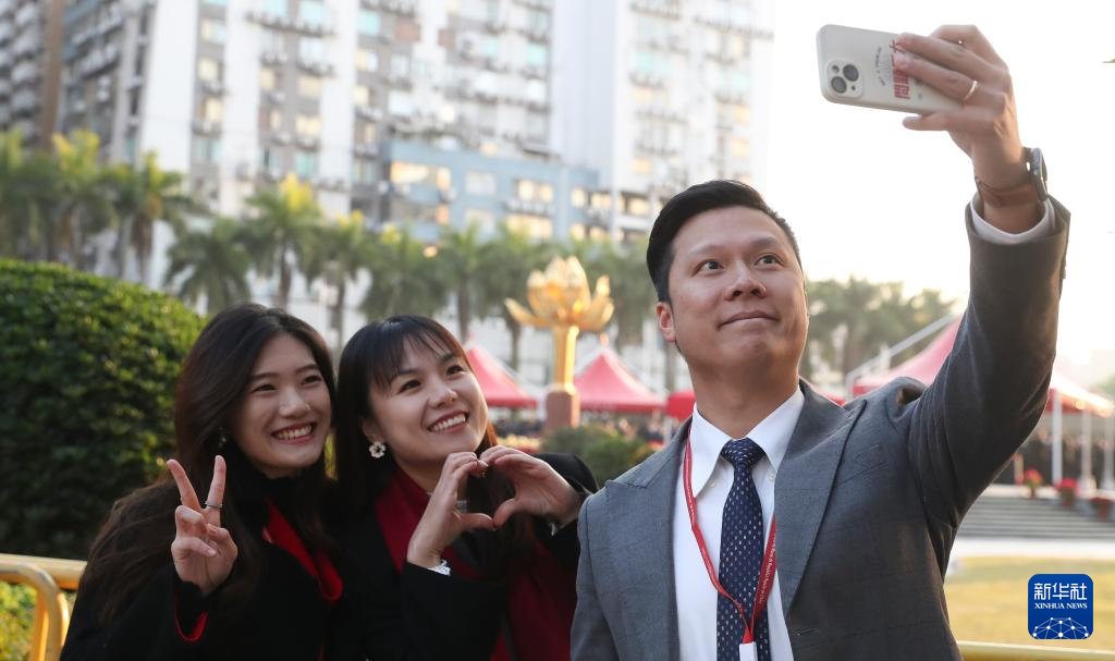 12月20日,澳门特别行政区政府隆重举行升旗仪式,庆祝澳门回归祖国25周年。这是人们在升旗仪式后留影。