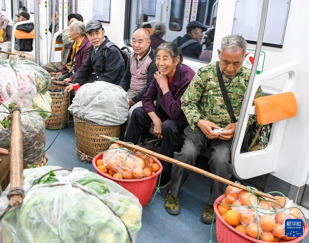 3月27日清晨,菜农乘坐被称为“背篓专线”的重庆轨道交通4号线,前往重庆城区的菜市场售卖农产品。