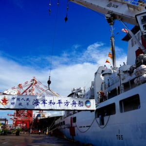 这是12月21日在斯里兰卡科伦坡港拍摄的执行“和谐使命-2024”任务的海军“和平方舟”号医院船。