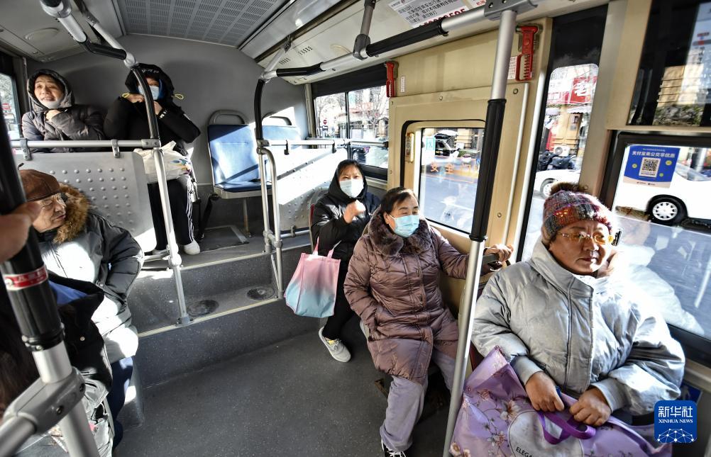 12月25日,花园闸社区的居民乘坐“温暖小公交”。