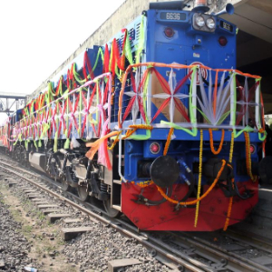 12月24日,帕德玛大桥铁路连接线全线通车后的首班列车抵达孟加拉国首都达卡。