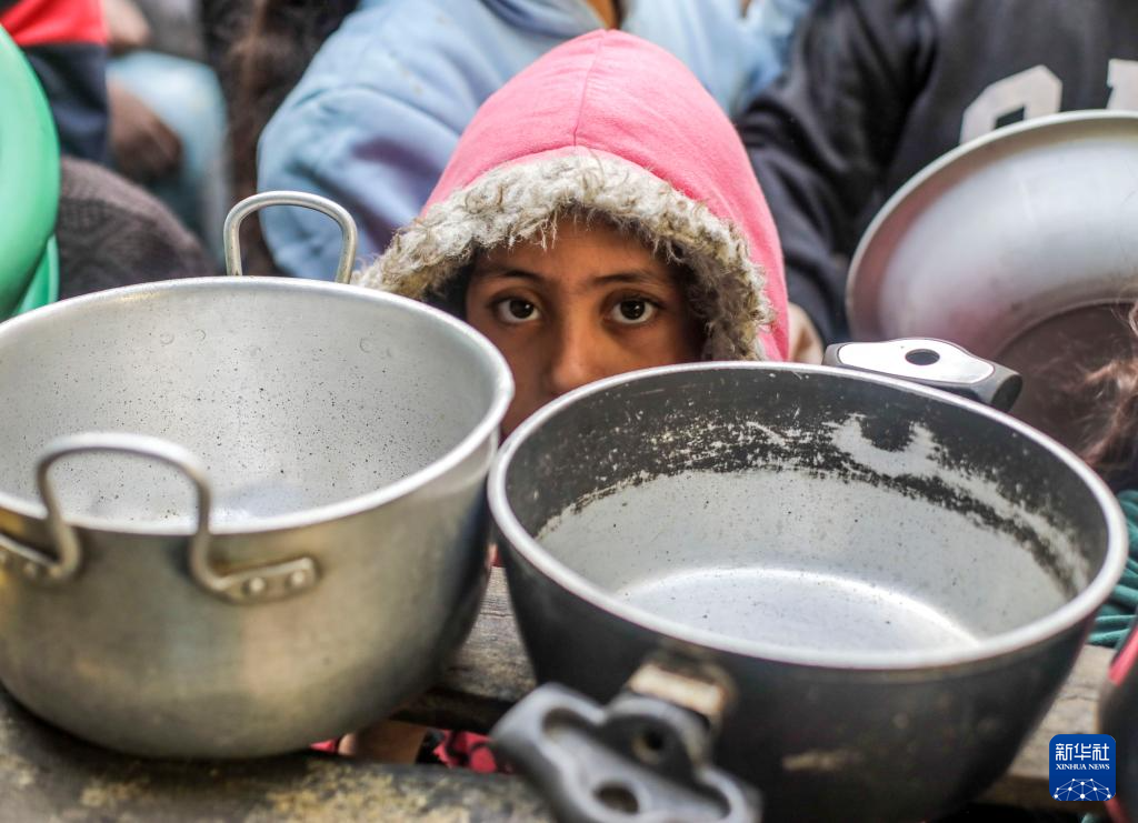 12月27日,巴勒斯坦人在加沙城等待领取救济食物。