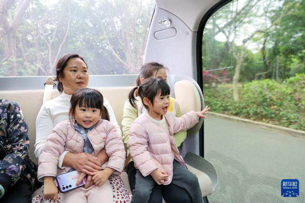 2024年12月27日,人们在深圳莲花山公园里乘坐无人驾驶观光车。