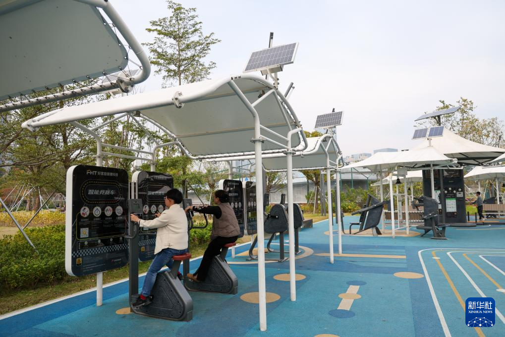 2024年12月27日,人们在深圳笔架山公园里的室外智能健身房锻炼身体。