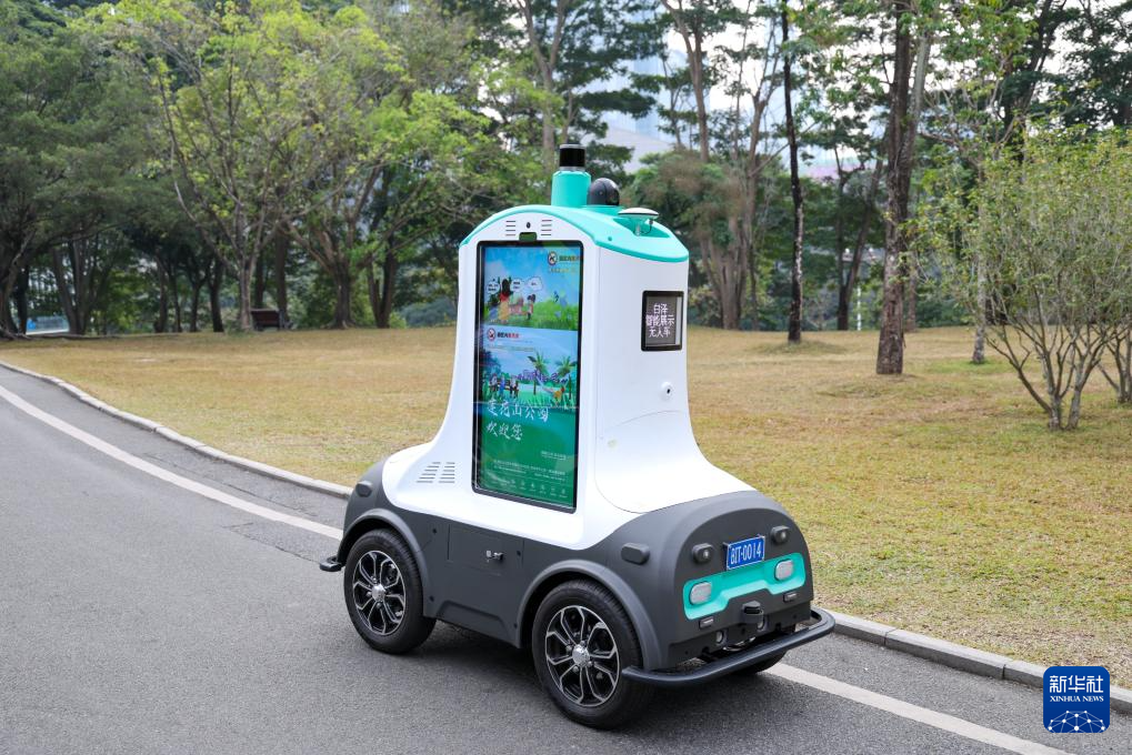 这是2024年12月27日在深圳莲花山公园拍摄的智能展示无人车。
