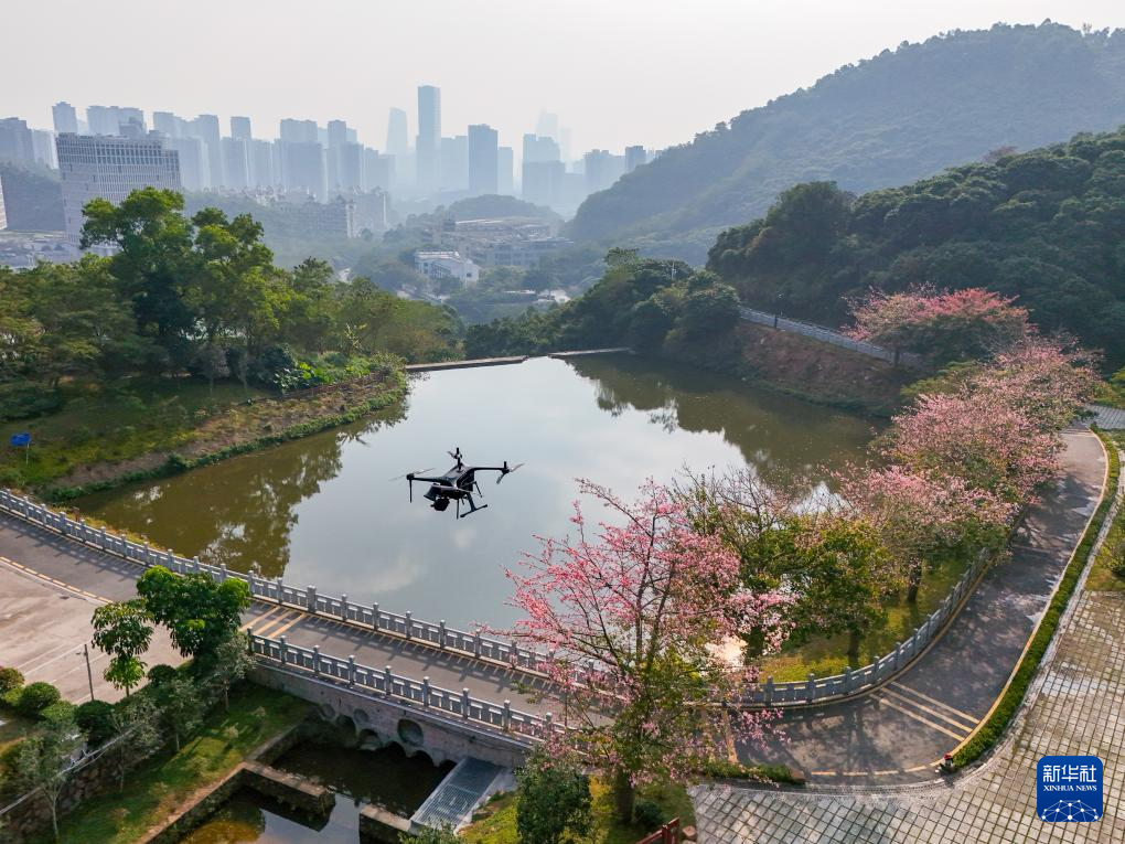 2024年12月27日,无人机在深圳塘朗山郊野公园里巡检(无人机照片)。