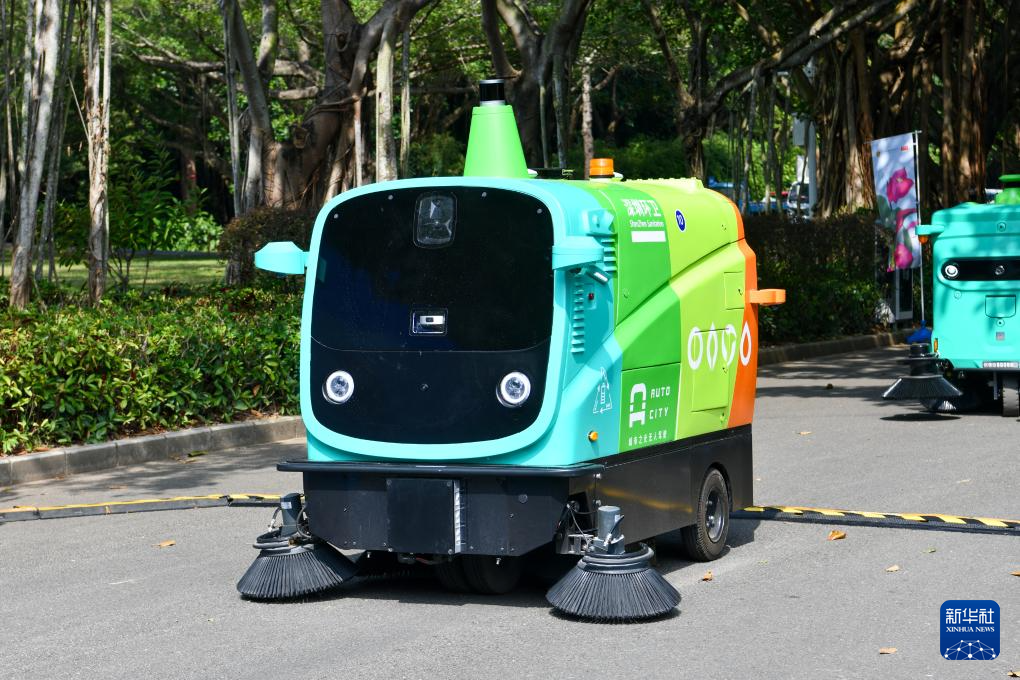 这是2024年11月11日在深圳莲花山公园拍摄的环卫机器人。