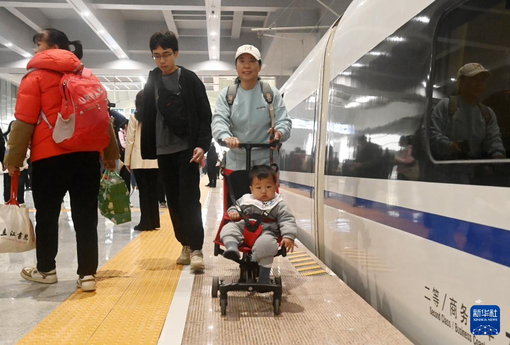 2024年12月30日,在广西玉林北站,旅客准备上车。