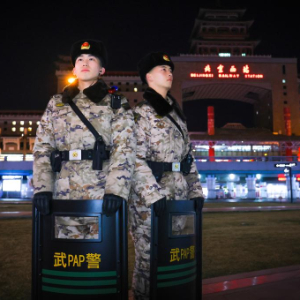 2024年12月31日,武警北京总队执勤第六支队官兵坚守重点哨位,维护旅客平安出行。