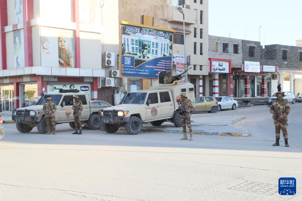 1月5日,士兵在利比亚西部沿海城市扎维耶执勤维持治安。