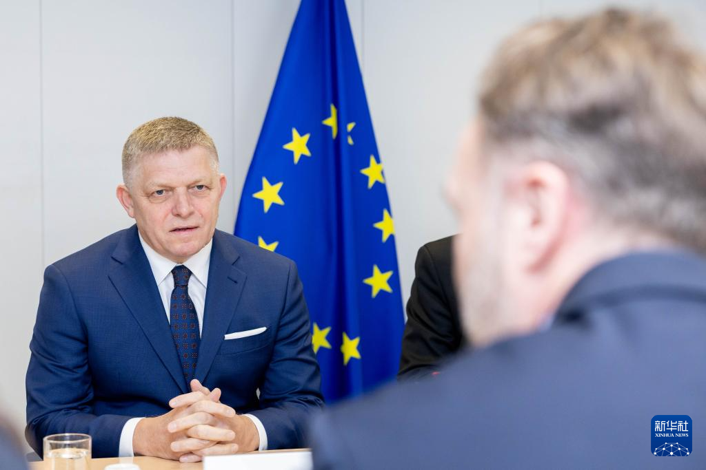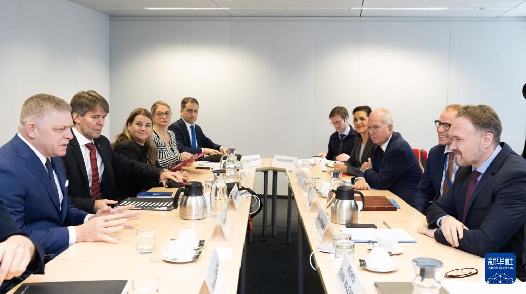 1月9日,在比利时布鲁塞尔,斯洛伐克总理菲佐(左)与欧盟能源专员丹·约根森举行会谈。