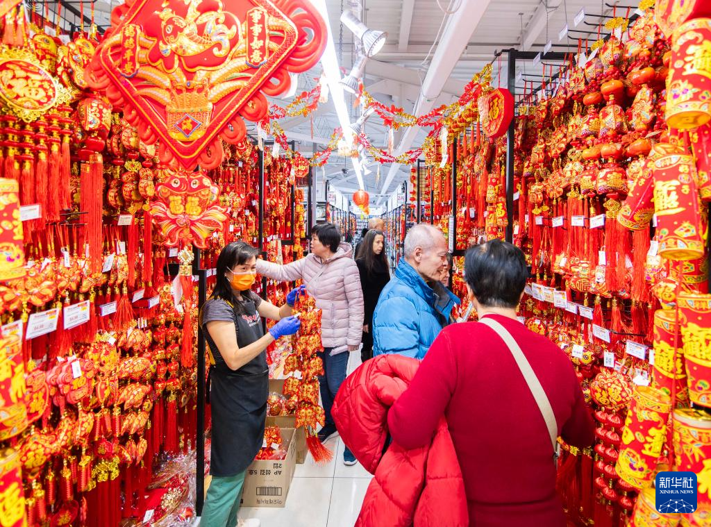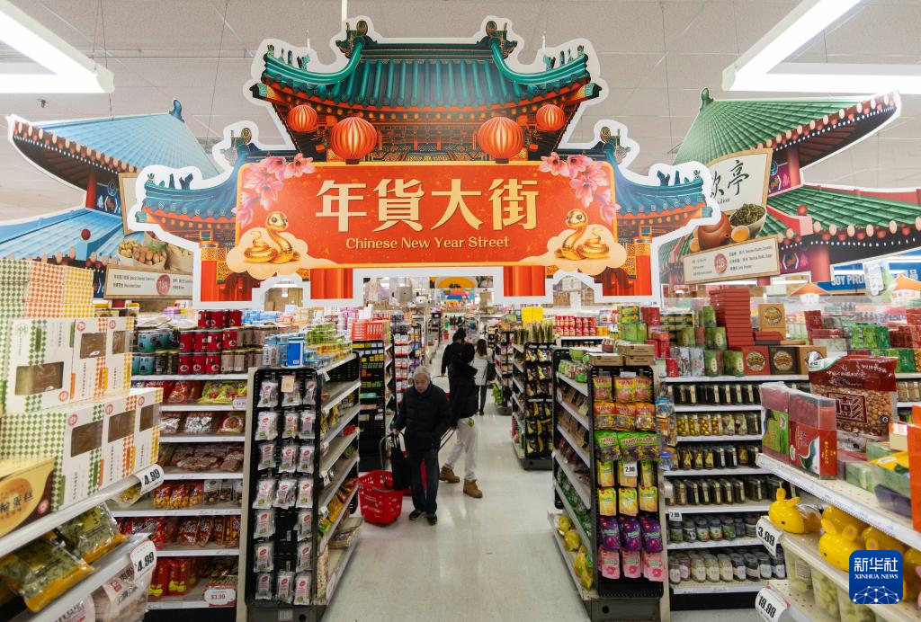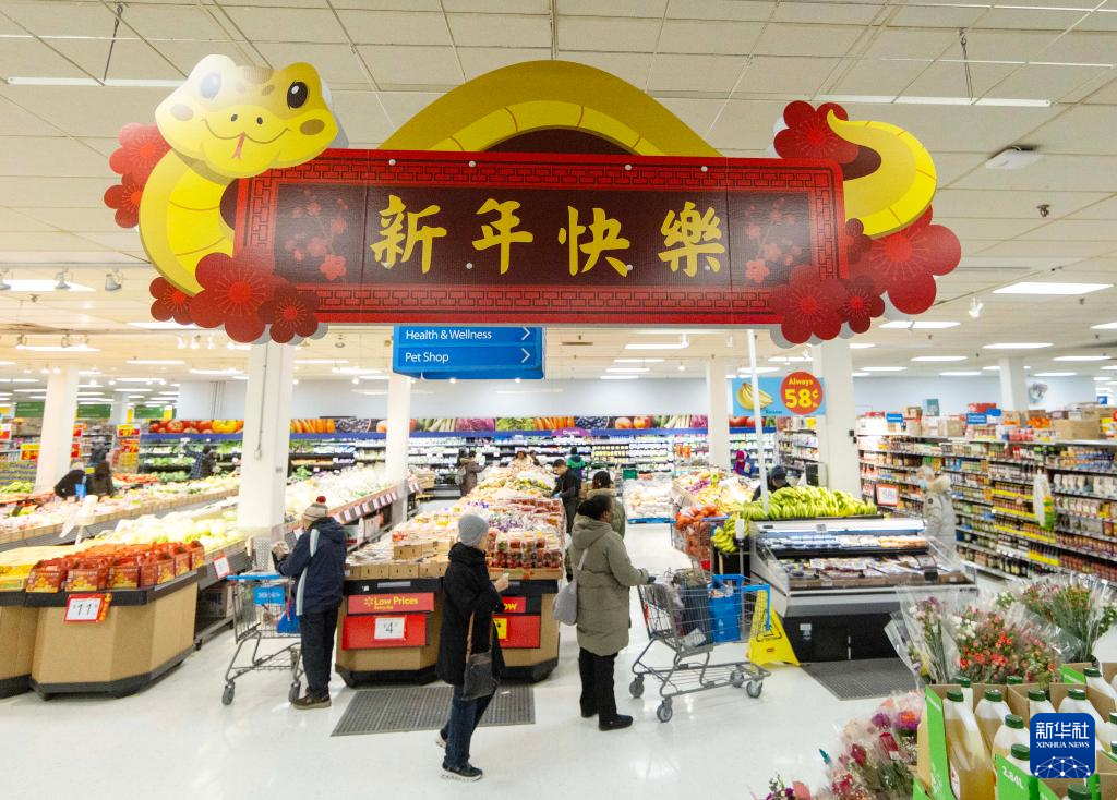 为迎接中国农历蛇年春节,加拿大不少商场和超市近日推出以春节为主题的装饰和商品,吸引民众备年货。
