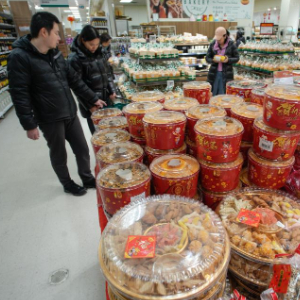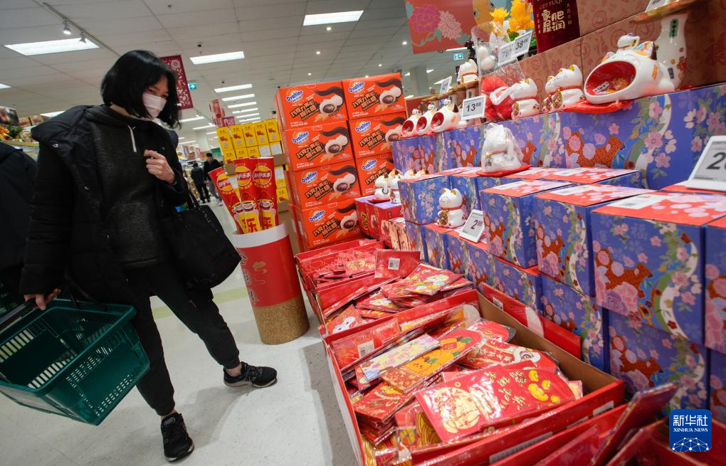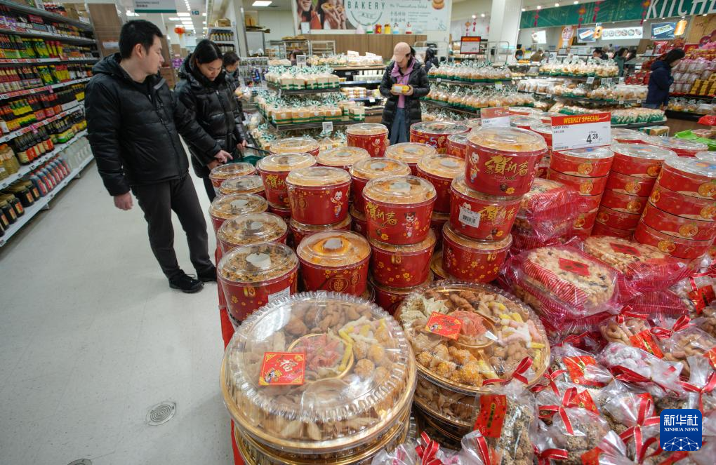 1月10日,在加拿大里士满,顾客在一家超市选购年货。