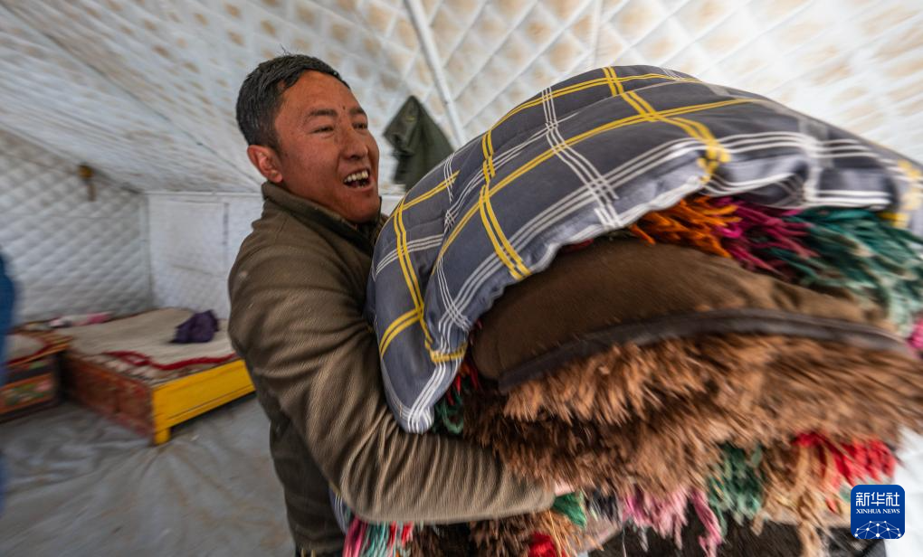 在定结县郭加乡乃村集中安置点,村民在搬家(1月11日摄)。