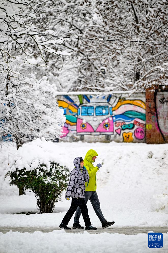 由于低温与北风的共同作用,北马其顿首都斯科普里一带近日出现较大降雪。