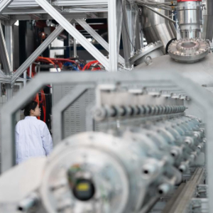 1月14日,在位于安徽省合肥市的聚变堆主机关键系统综合研究设施(CRAFT)园区内,科研人员在巡看强流直线等离子体装置“赤霄”的运行状态。