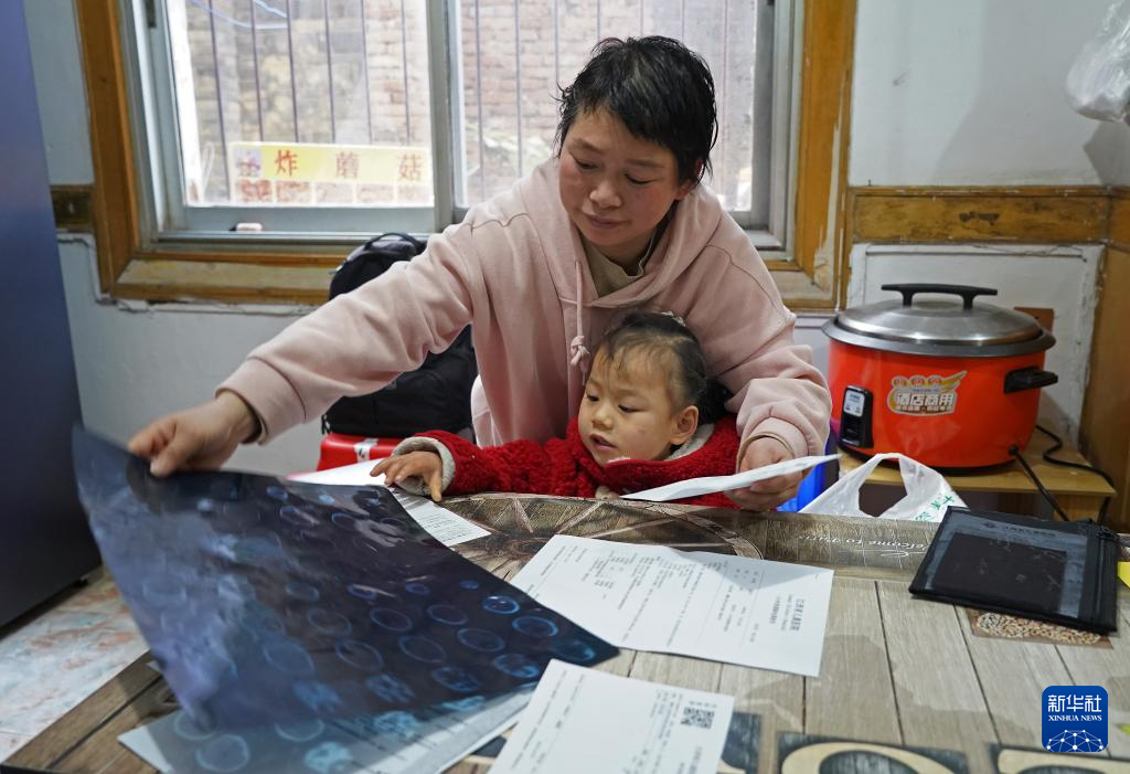 在位于南昌的出租屋里,樊检检翻看女儿的治疗资料(1月7日摄)。