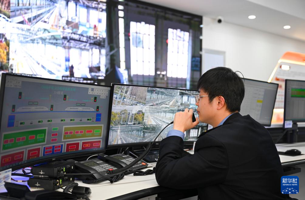 1月16日,在上海动车段虹桥动车运用所,调度员在新型调度指挥中心远程监控隔离开关供断电作业。