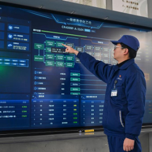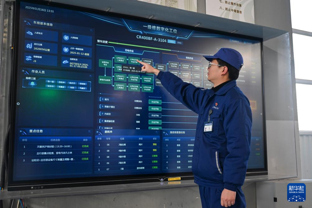 1月16日,在上海动车段虹桥动车运用所,工长在操作一级修数字化工位界面。
