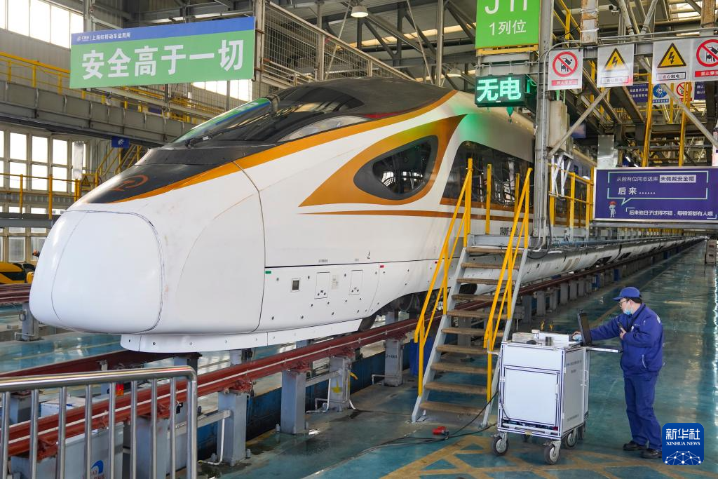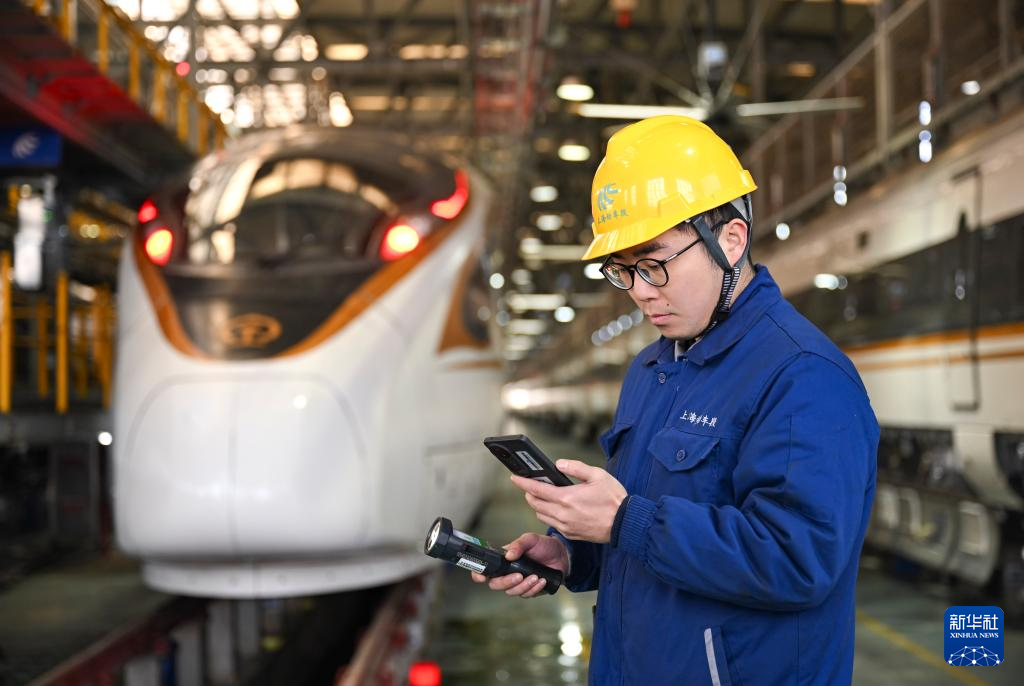春运期间,该动车运用所主要承担上海虹桥至北京、广州、成都等方向共86个交路的动车组运用检修工作。2024年底,依托信息化、数字化、智能化等技术,虹桥动车运用所实现从调度指挥到列车检修的全流程智能升级,通过人机协作有机结合,提高检修作业的质量与效率,科技赋能护航旅客平安归途。