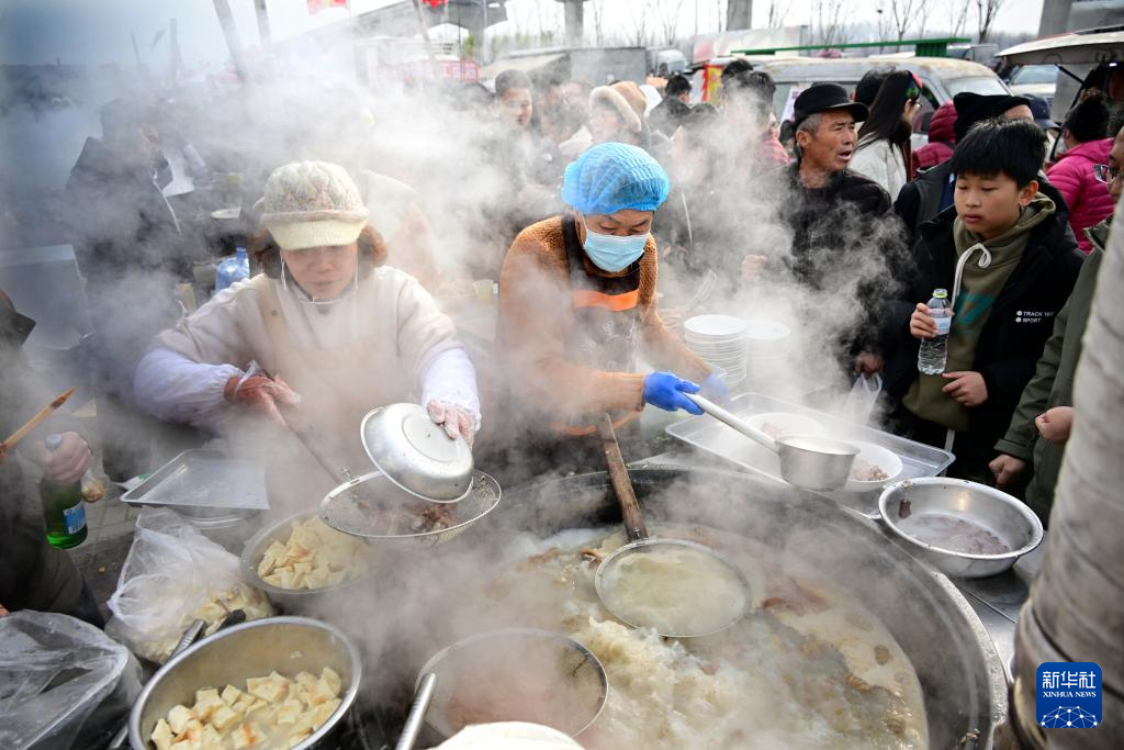 1月18日,泊里大集一个羊肉汤摊位前排起长队。