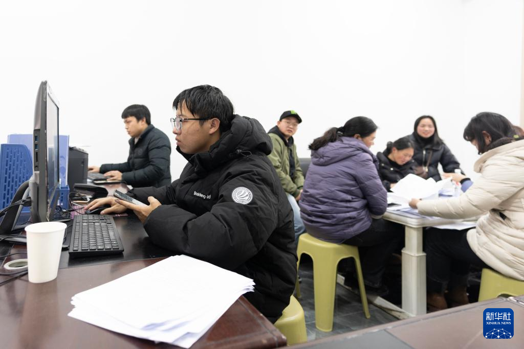 1月16日,工作人员在雄俊园小区党群服务中心整理入住的受灾村民信息。