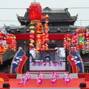 1月21日,村民在秀山县洪安古镇老街进行《好运全都来》歌舞表演。