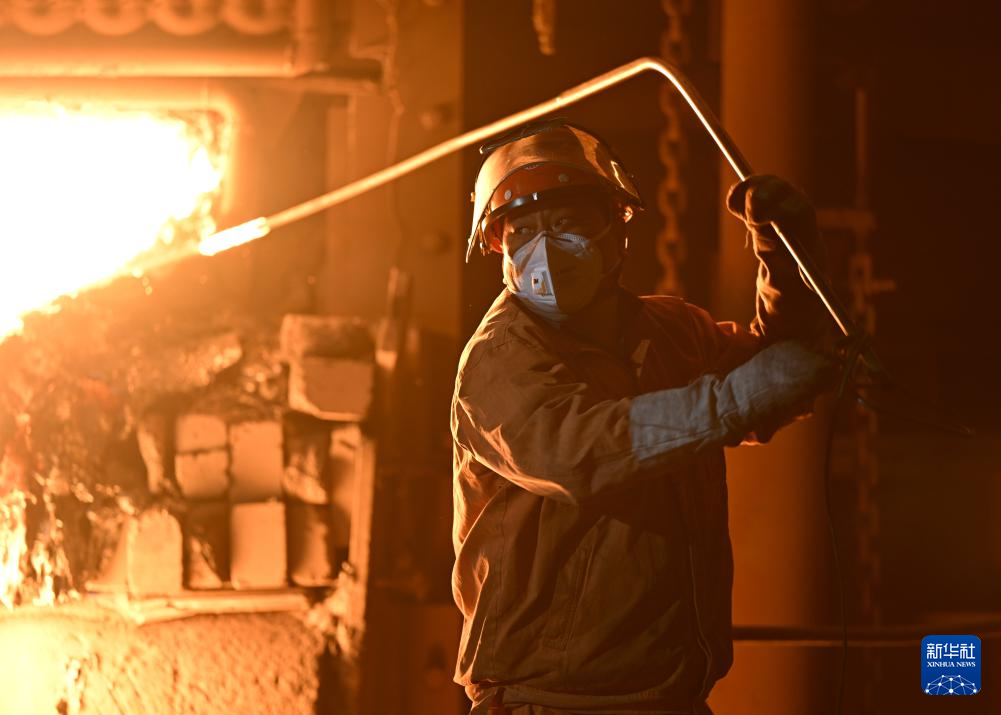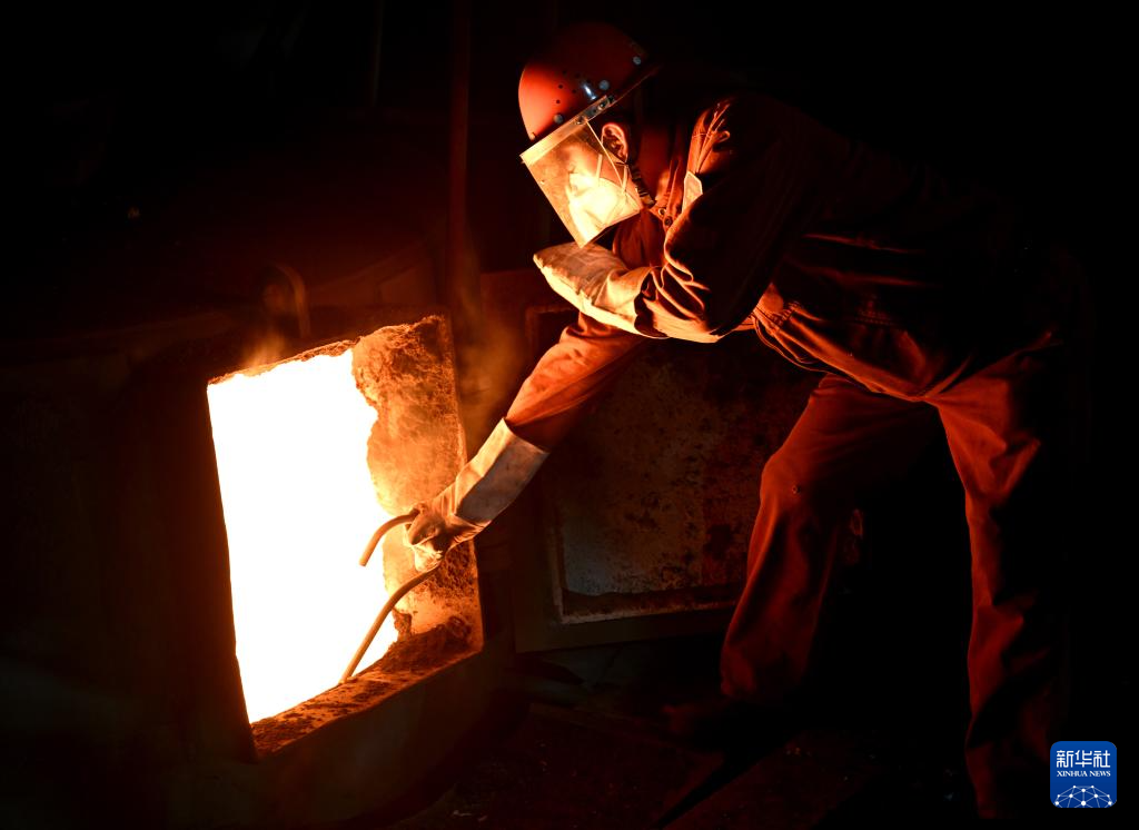 1月21日,工人使用探棒对初炼炉进行测温。