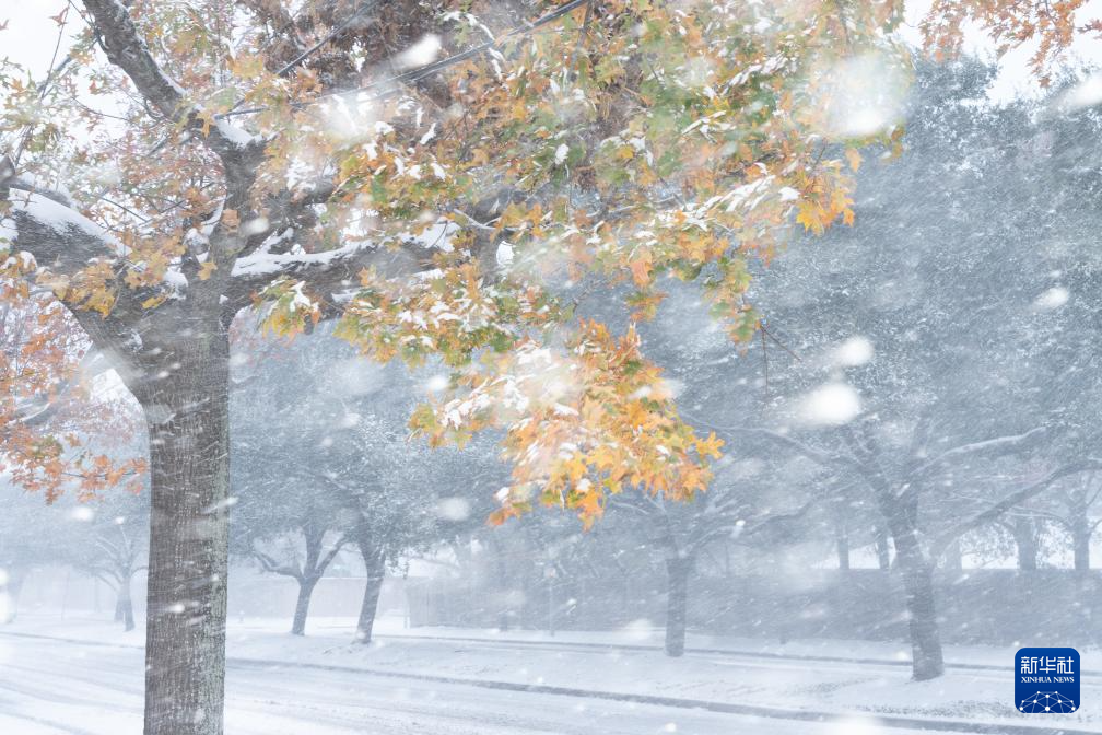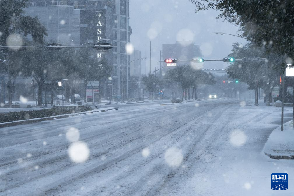这是1月21日拍摄的冬季风暴中的美国休斯敦街道。
